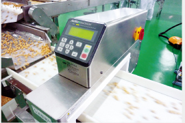 これまでのラインで除去できなかった微細な金属を、金属検出機を使って徹底除去します。