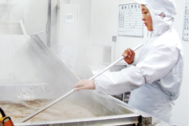 バターピーナッツの食感は、気候や原料の水分、フライの温度・時間などに左右されます。フライ前のエージング、フライの温度と時間を徹底的に管理することにより、常に安定した食感を追及しています。